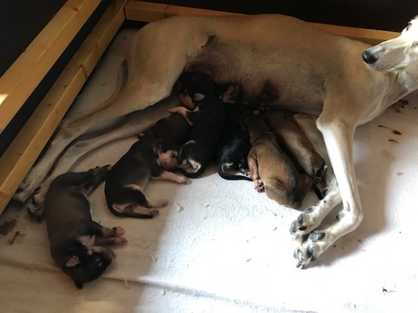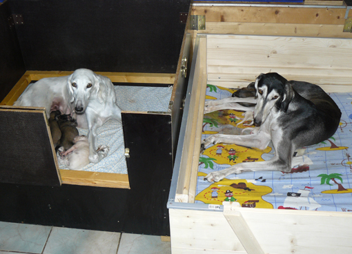 Der M-Wurf ist geboren - Liv, die stolze Mama von 3 Buben und 4 Mädels mutiert zur Übermutter:-) 7 Babies, smooth & feathered, in den Farben rot, fawn, grizzle und b+t. Noch 3 Mädels und evtl. ein Bub suchen ein windhundgerechtes Zuhause. Abstammung:LIV KAROLY x TIZPA PORGOUHAR ISFANDIYAR