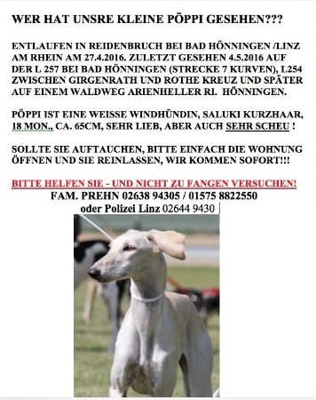 Mit freundlicher Genehmigung von RTL hier der Beitrag über Pöppi: http://rtlnext.rtl.de/videos/verzweifelte-frau-schlaeft-sogar-im-wald-ihr-hund-ist-entlaufen-449975.html (bitte kopieren und in Browser einsetzen!) 25.7.2015